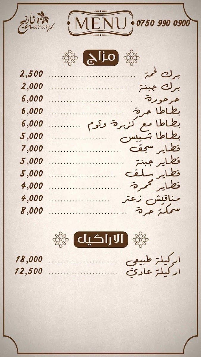 Welcome to Naranj Restaurant, a culinary gem nestled in the serene English Village of Erbil, Kurdistan. Renowned for its exquisite selection of Oriental cuisine, Naranj brings together the vibrant flavors of Moroccan, Syrian, and Iraqi dishes, creating a harmonious dining experience. The restaurant's ambiance is elegant yet inviting, ensuring that every meal feels special.